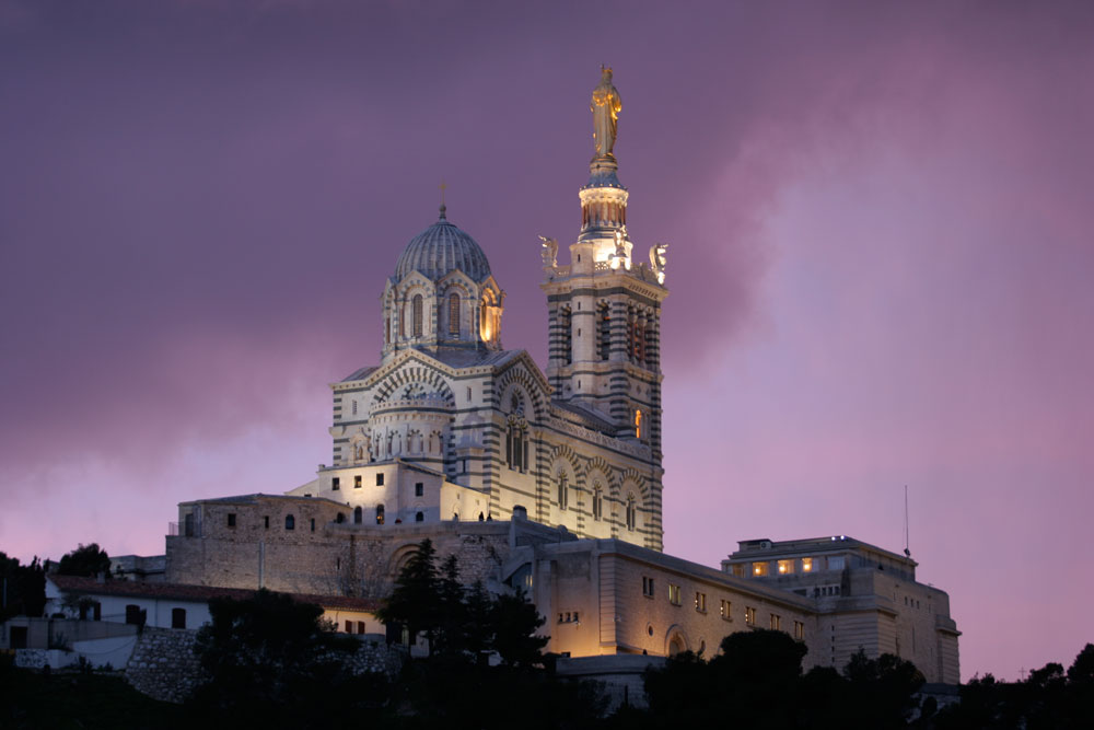 Este edificio que veis es la Notre-Dame-de-la-Garde, conocido localmente como « la Bonne Mère ». Se encuentra situado a 149 metros de altura frente al "Vieux-Port" de Marsella y nos lo encontramos cada año que vamos al Babel Med Music - este año ¡por quinta vez!-. Este año además tendremos la alegría de presentar en los showcases a la fadista Carla Pires con su nuevo disco, "Rota das Paixões". Será el viernes, 30 de marzo en los Dock des Suds.