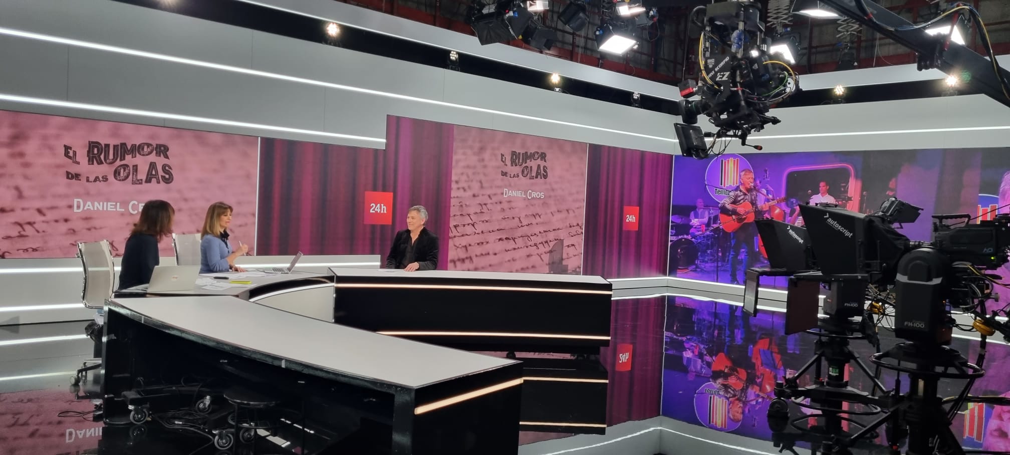 Daniel Cros presenta "El rumor de las olas" en el Canal 24H, entrevistado por Beatriz Pérez Aranda y Ángeles Bravo. En la entrevista habló también sobre su nueva banda, Las Almas Sedientas.